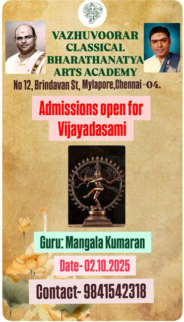 After his father’s demise Vazhuvoor Samraj Kumaran is upholding their dance school “Vazhuvoor Classical Bharathanatya Arts Academy” which is situated at Mylapore.Being the secretary of this dance school Kumaran encourages the young upcoming artists in the field of dance and music . As a sign of his passion towards the art he is organizing The Vazhuvoor Dance And Music Festival every year which was started with authentic style by his father Natya Kala Samrat Natya Peraraiyan Kalaimamani Vazhuvoor R.Samraj.